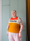 Jeepers includes 2 views: one with no hip shaping (Straight View) that mimics a more traditional ‘menswear fit,’ and one with hip shaping (Hip Shaping View) that is designed to create more room in the hips for those of us who have a more bottom-heavy shape! There are instructions for both sleeveless and short-sleeved options. At the chest, there are optional short rows which can be added to accommodate breasts. This pattern is graded using ‘women’s’ sizing charts and is designed with a wide variety of cisgender women’s shapes in mind. This is also a perfect pattern for trans men or other folks who have had top surgery and want a well fitting garment through the shoulders and hips without sacrificing style. This style is totally unisex and should also fit a lot of cis men and other people who usually use ‘men’s’ sizing charts, but be aware if you have particularly broad shoulders this may not be the pattern for you.
