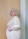 This is a ‘3 sizes fit most’ pattern. You can change the effect of the fit by choosing different sizes or working it in different materials/fibres. I originally designed size 2 for myself at bust size 51in with a decent amont of positive ease, but I actually wear the size 1 most often and it has negative ease on me. I personally think the fit is pretty magical; I’ve tried size 2 on my teenage siblings of many genders, my mum, my dad, my assistant, and myself (a size range of uk 6-26 with boobs ranging from none to a K cup) and it looked good on everyone!