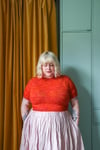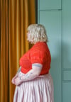 Worked from the top down in the round, this raglan top has a retro-feel and a vintage fit. There are options for two different neck finishings and two waist shaping options to fit your body shape. See advice below about picking the right size for you - to achieve fit shown, the top is worn with significant negative ease. Don’t worry, it has plenty of stretch! Additionally, instructions for optional bust darts in 2 sizes are provided for folks who require more space in the front of their Tumble Tee.