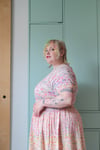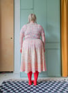 Worked from the top down in the round, this retro-feel dress has a negative ease raglan top and a lovely, full, stocking stitch skirt with a similar effect to a circle skirt. Flared at the hips and with multiple shaping options, this dress is designed to fit a wide range of bodies. There are options for two different neck finishings, an optional bust dart instruction, as well as optional German short rows for back length (full butt) adjustment. I have also included yardage estimates for adjusting the length of the skirt.